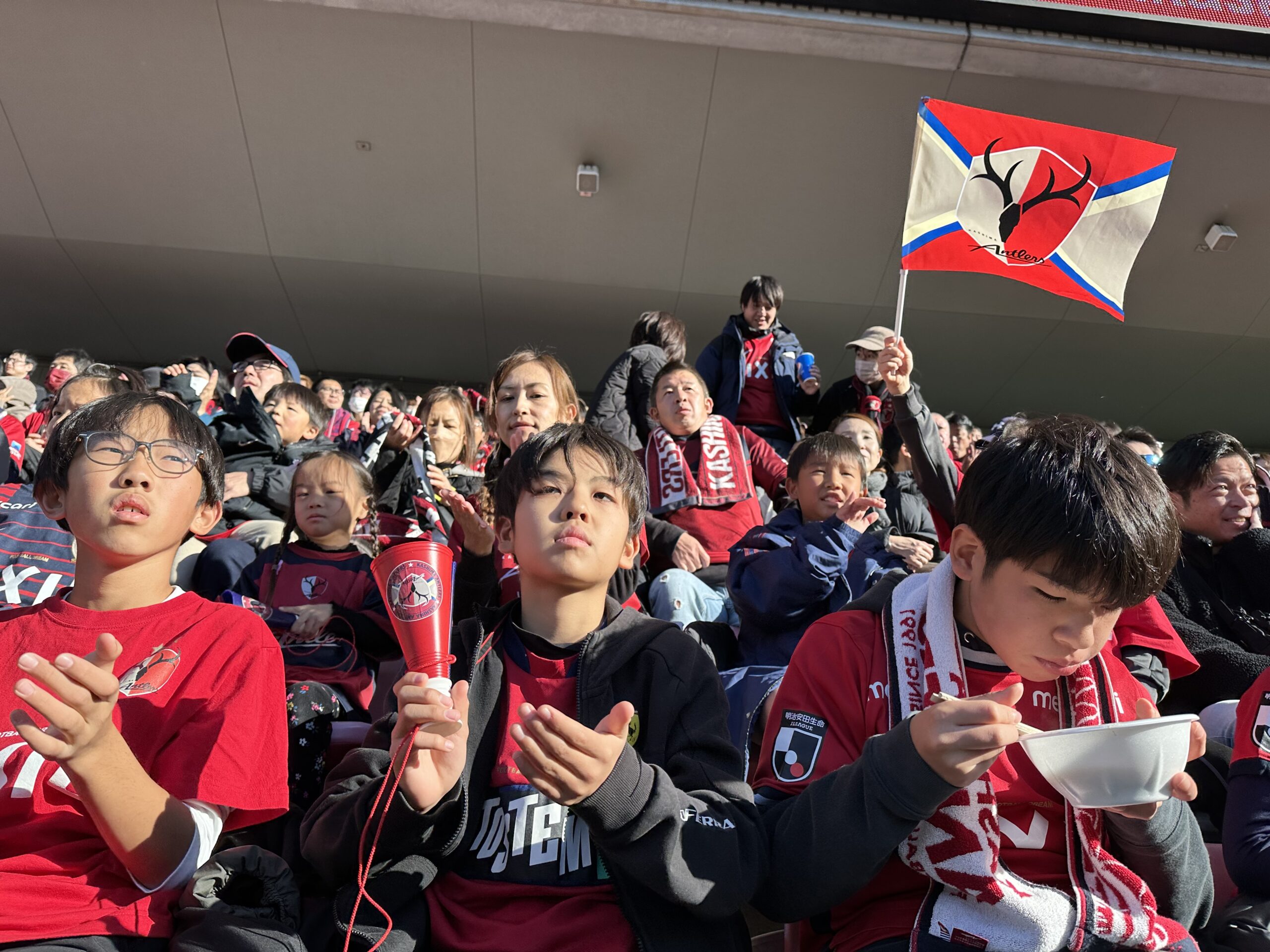 12月3日(日)に県立カシマサッカースタジアムで行われた鹿島アントラーズの試合に、地元サッカーチームの子どもたちを招待いたしました。子供たちは、試合開始前から鹿島スタジアムの美味しいご当地飯をほおばったり、ユニフォームに着替えて応援準備ばっちりな様子でした。