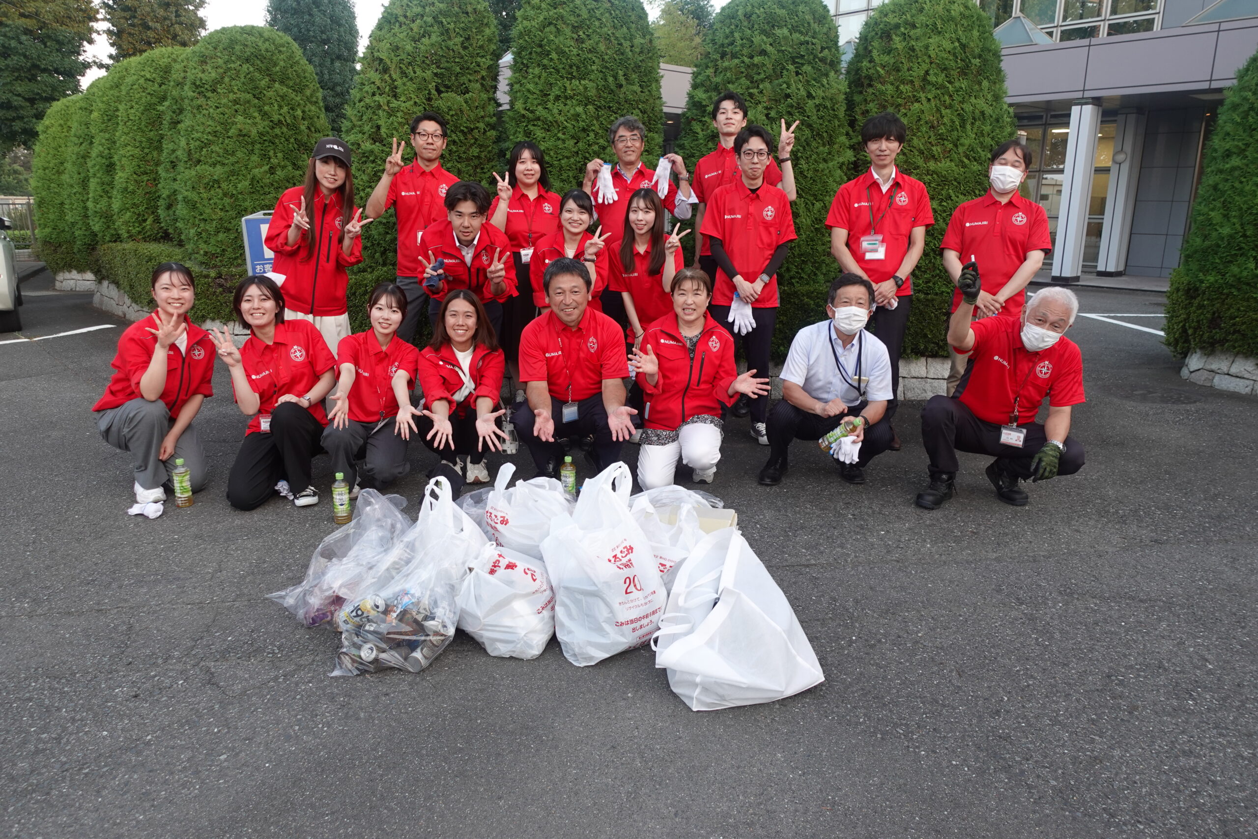 本社を拠点に4つのコースに分かれゴミ拾いを行い、多くのゴミを集めることができました。