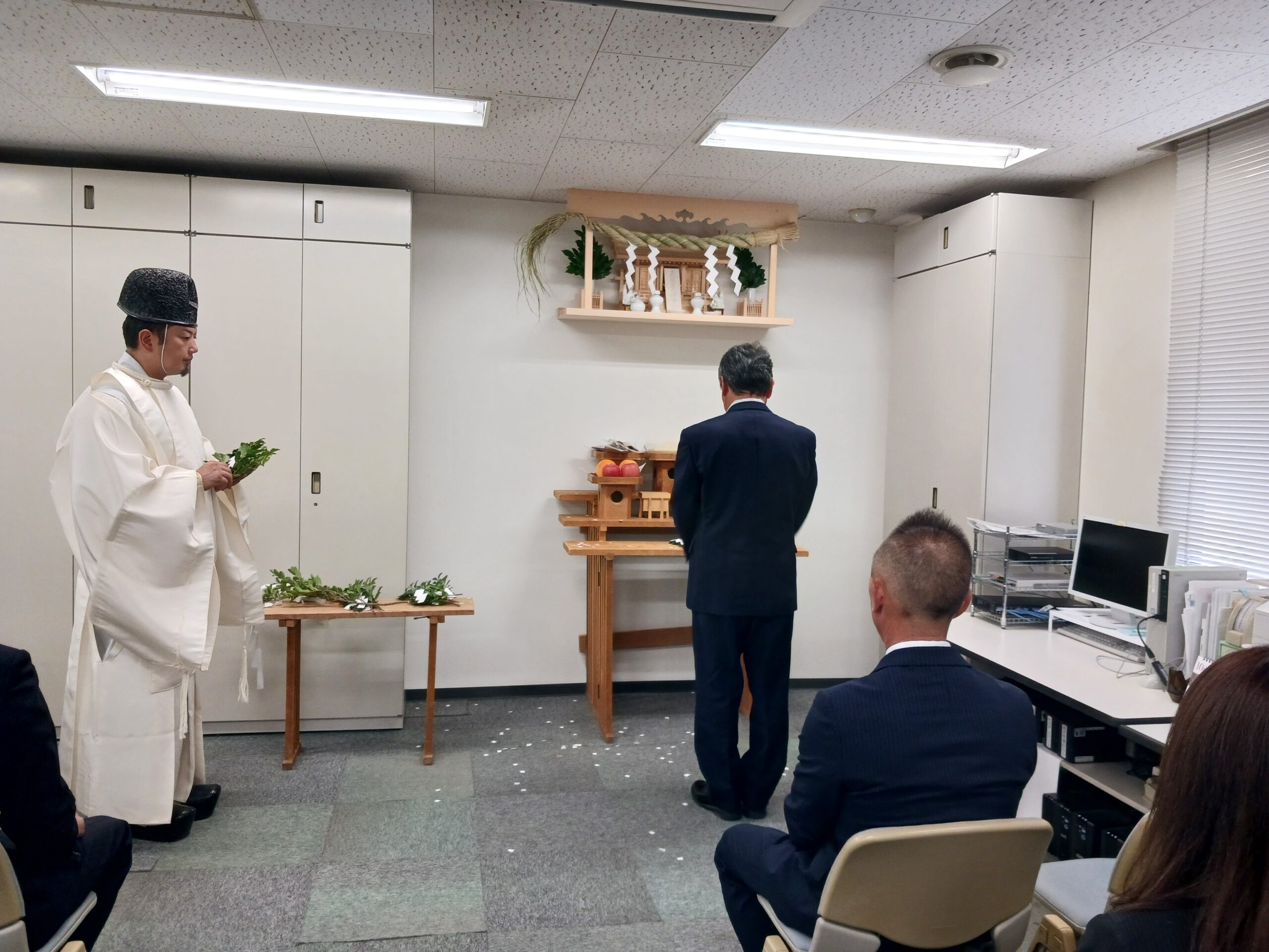 本日、弊社のグループ会社である茨城倉庫㈱本社におきまして、笠間稲荷神社宮司による神棚清祓い式を実施いたしました。