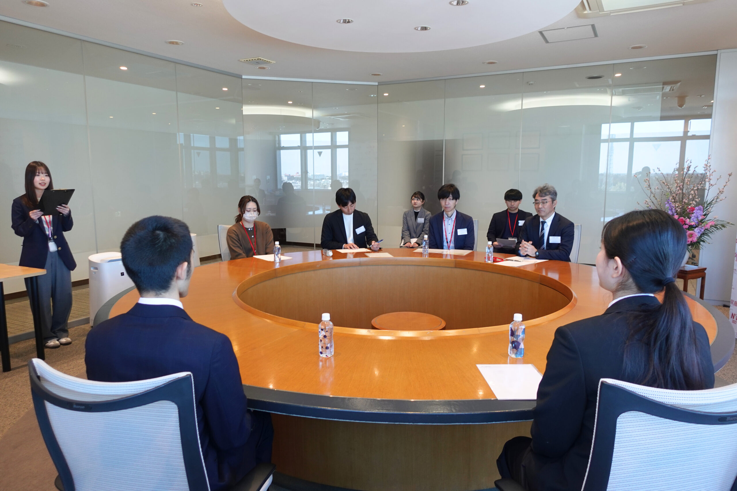 「物流を通して人々の生活を支えたい。」「大学で学んだ知識を活かして地域や会社に貢献したい。」など熱い思いを真剣な表情で発表する姿に将来への期待が高まります。