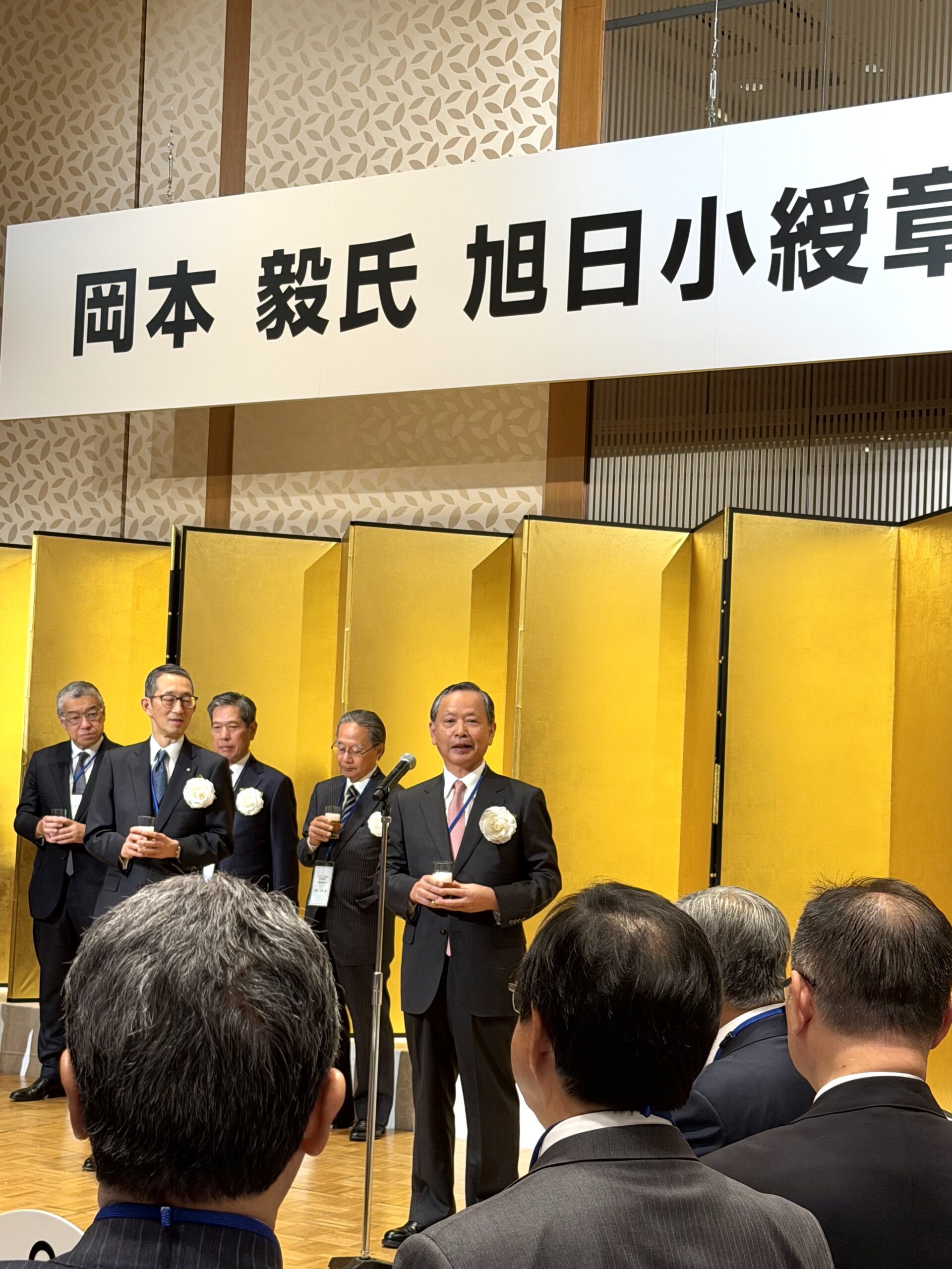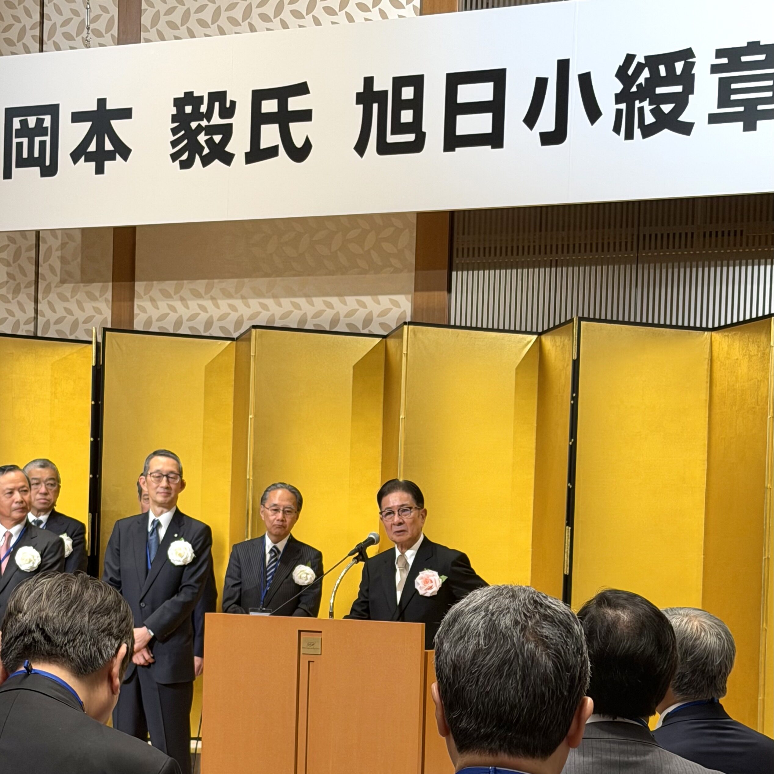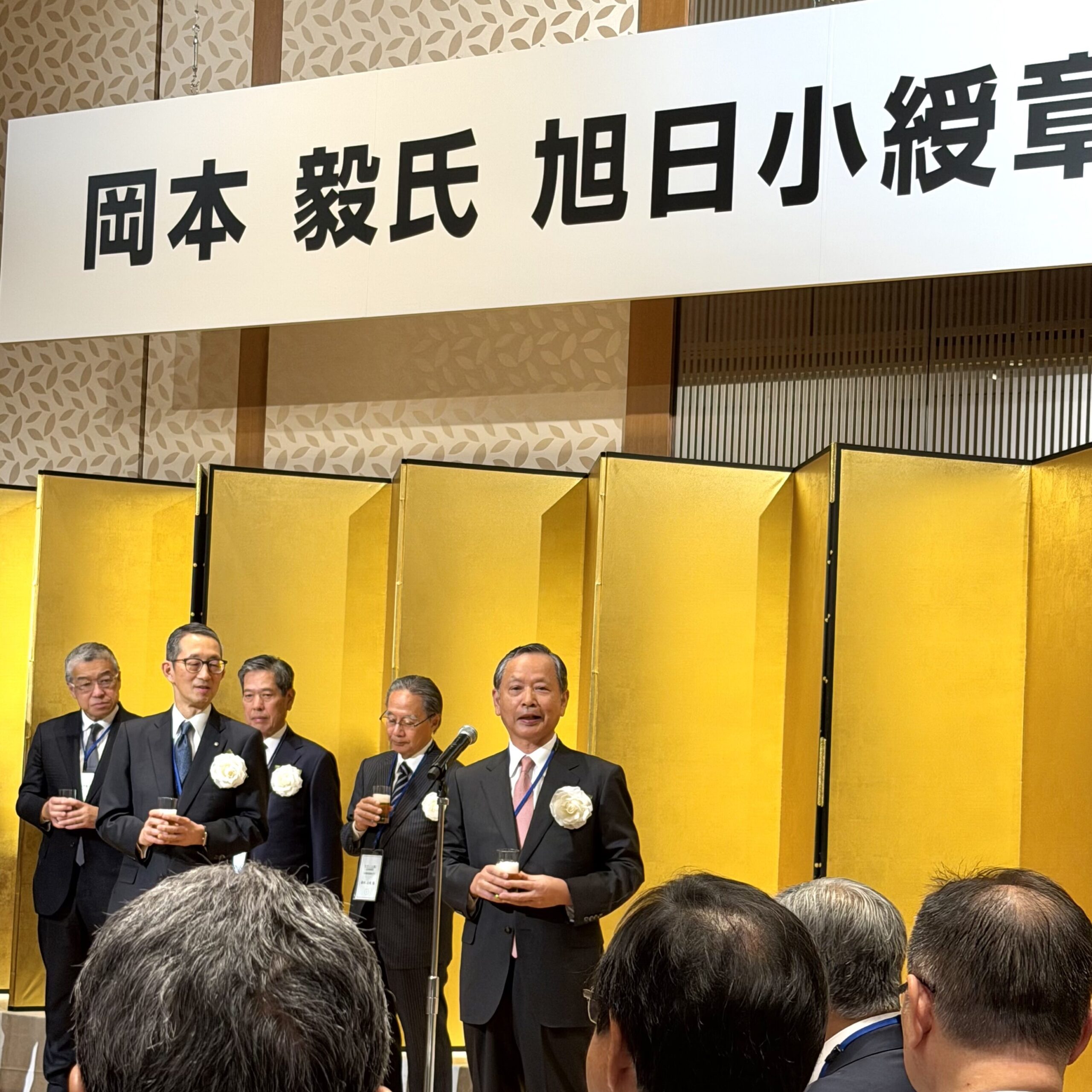 INFORMATION 2026.4.14 旭日小綬章受章祝賀会に弊社沼尻が参加させていただきました。 弊社沼尻が、4月14日(火)に開催された「岡本毅氏 旭日小綬章受章祝賀会」に参加させていただきました。 岡本硝子株式会社 代表取締役会長兼CEO 岡本 毅氏 - INFORMATION